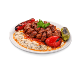 Doner kebab sur lit de pain, yaourt, sauce tomate au beurre
