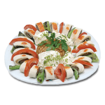 Tomate, mozzarella, charcuterie, lardon de volaille, origan