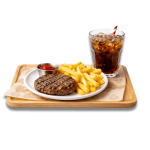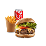 Double steak hachée, frites, boisson canette au choix