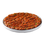 Tomate, mozzarella, poivrons, oignons, merguez, œuf, piment fort, origan