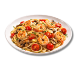 Tomate, mozzarella, saumon, crevettes, touche de crème, ail