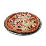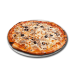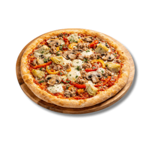 Tomate, mozzarella, thon, champignons, jambon, poivrons