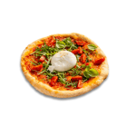 Tomate, mozzarella, burrata, roquettes, copeaux de parmesan, origan