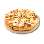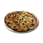 Base crème, mozzarella, pommes de terre, oignons, reblochon, raclette, jambon